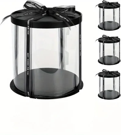 Die Tortenbox in transparentem, rundem Design mit den Maßen 25cm x 25cm bietet genügend Platz für Kuchen oder Torten jeder Art. Durch das schwarz lackierte Innenleben wird der Inhalt perfekt in Szene gesetzt. Perfekt für jede Feierlichkeit!