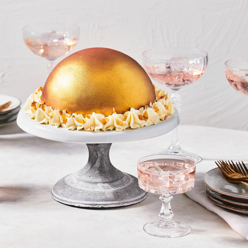 Mit FunCakes hellgoldenem Metallic-Spray können Sie Ihren Fondantkuchen, Marzipankuchen, Schokolade, Cremes, Blütenpaste, Modelliermasse, Keksen und vielem mehr einen wunderschönen goldenen Perleffekt verleihen. Die Glasur trocknet vollständig auf der Torte, sodass beim Anfassen keine Fingerabdrücke mehr auf der Torte zurückbleiben.